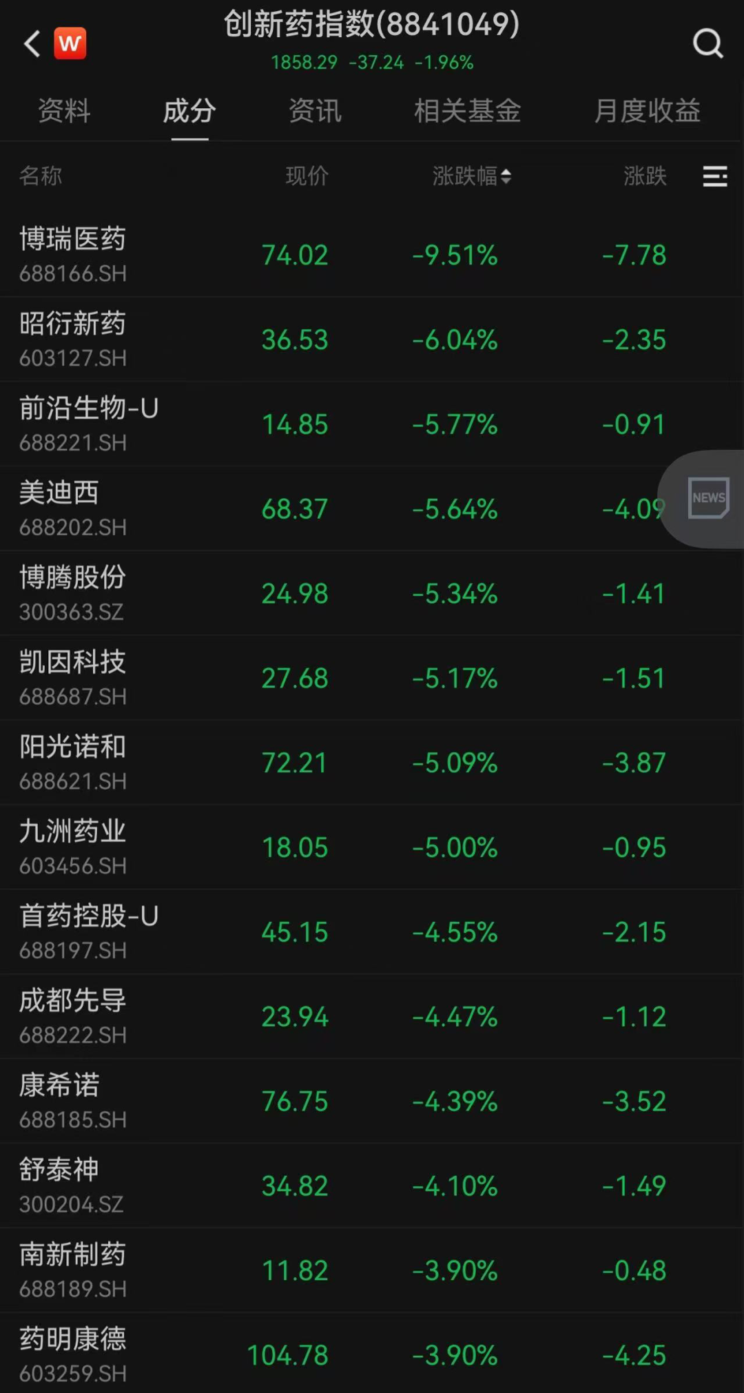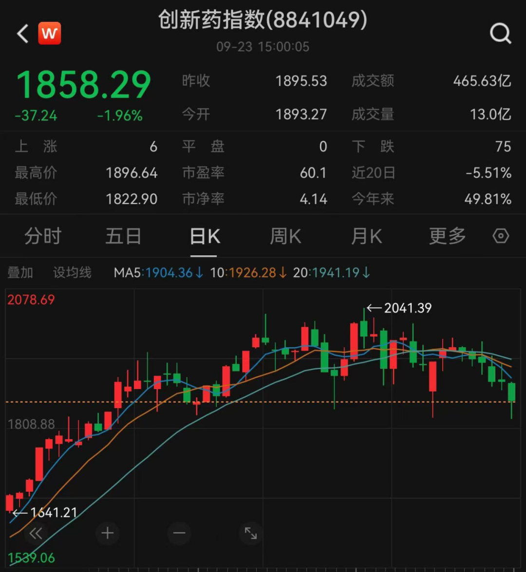 经历前期大涨后,创新药板块近期处于调整状态。