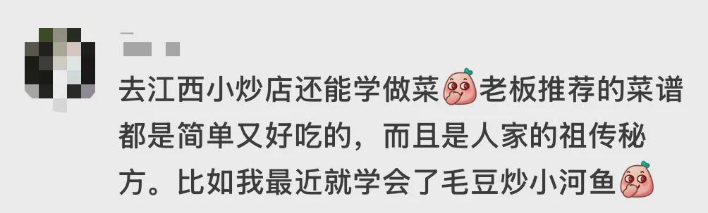 小妍说,自己去江西小炒店吃多了,还吃出了一种在家吃饭的亲切感。“因为只有跟妈妈点菜,才能任性地说自己不吃香菜,或是多加点肉。而且去的次数多了,老板还会细心记住你的忌口和偏好,根本不用你说。”