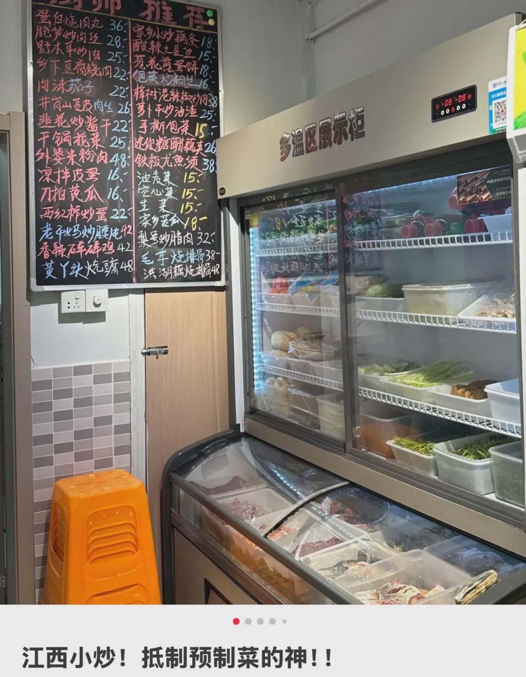 成都人小妍,在杭州西湖区工作,被预制菜一顿围剿后,终于在公司楼下,挖出了一家主打江西小炒的私藏食堂。“平时吃预制菜吃多了,钻进江西小炒店才明白什么是锅气。一进去就能看见满冰柜的新鲜菜,和在后厨里把锅都抡冒烟了的师傅们。”